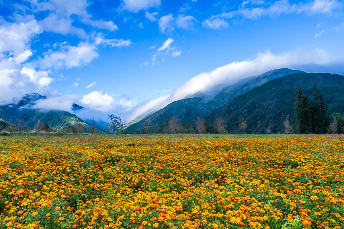 「2015-10-24 武陵農場露營區」 武陵農場位於雪霸公園境內,此刻滿山滿谷的鳳仙花和和波斯菊正與遠處桃山相呼應。可惜今年秋天來的晚楓葉和落雨松還沒開始變色,十一月應該就更美了!