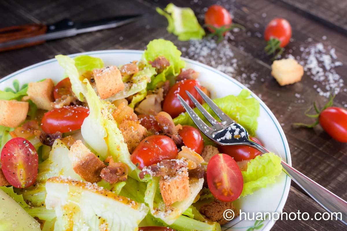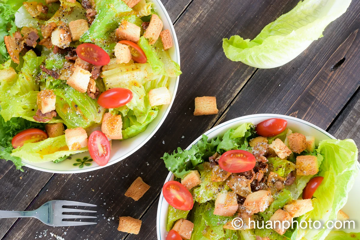 吃膩了每次露營貪方便的家樂福牌羊肉爐,這次準備清爽的凱撒沙拉當主食。 自備材料有: 蘿美生菜、聖女番茄、自己烤的吐司丁、芥子和風醬加調芥末胡椒和起司、現煎逼完油的培根、最後灑上黑胡椒與起司。