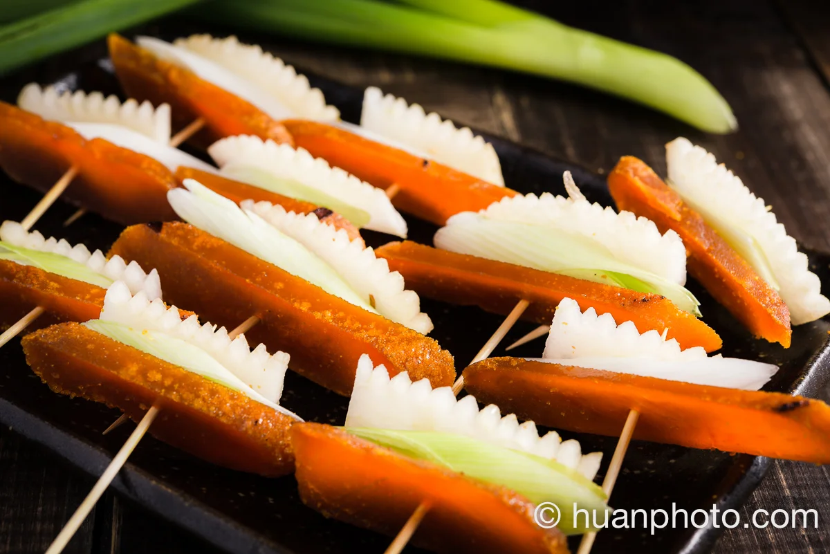 自家料理 - 高粱嗆辣烤烏魚子 Mar 24 Written By 江煥華 Huan Hua Chiang 上週末服務員訓練童軍總團長林哥傳授的烏魚子烹調方法: 整片烏魚子浸泡於高粱酒一分鐘後去模、2.直接用浸泡過的高粱酒點燃後雙面各烤一分鐘、3.斜切烏魚子,蒜苗,梨子用牙籤串在一起,美味嗆辣! View fullsize View fullsize View fullsize 江煥華 Huan Hua Chiang https://huanphoto.com