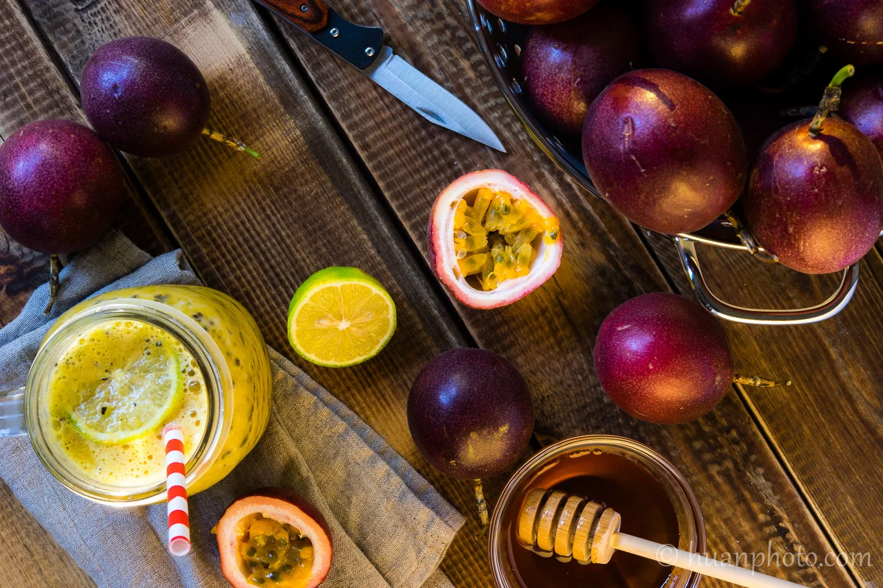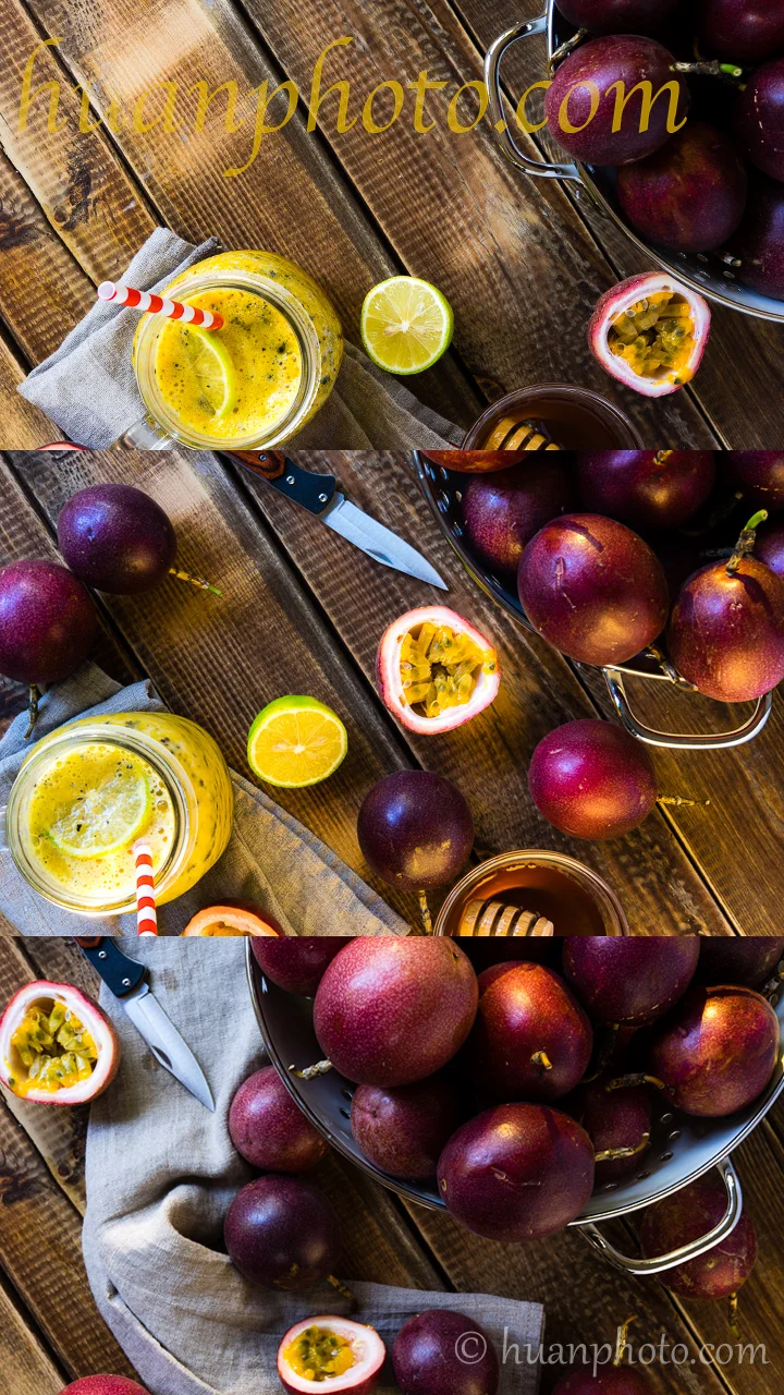 美食攝影低角度人造光: 夏日清涼飲 - 蜂蜜檸檬百香果冰沙